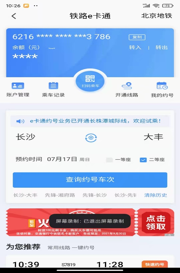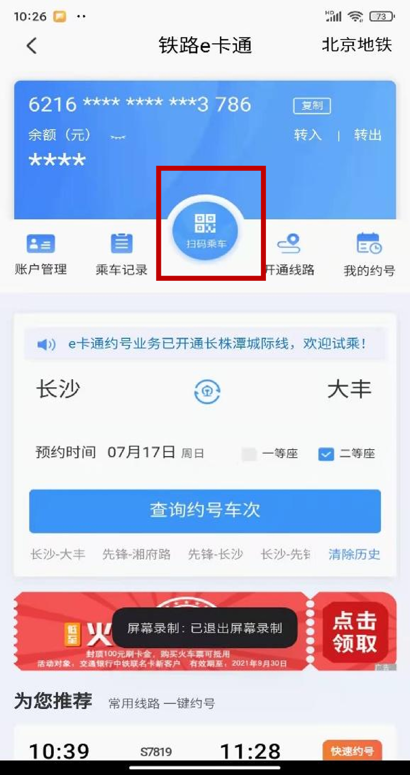 鐵路e卡通旅客進(jìn)站掃碼乘車,如有異常乘車記錄,則無法生成乘車碼,具體操作步驟如下: