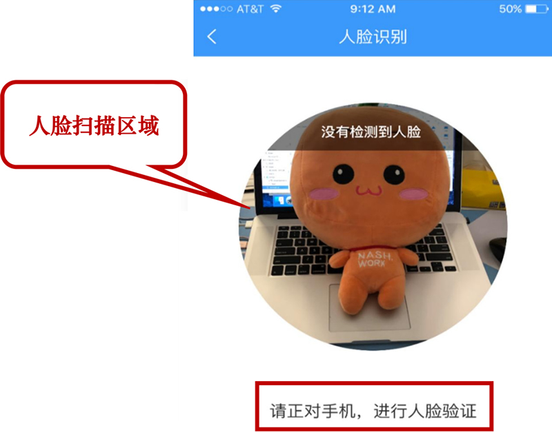 2.若客戶為首次辦理該業(yè)務(wù),則系統(tǒng)提示客戶需首先進(jìn)行人臉識別,并跳轉(zhuǎn)到【人臉識別】頁面??蛻舭凑障到y(tǒng)提示對準(zhǔn)人臉識別區(qū)域。