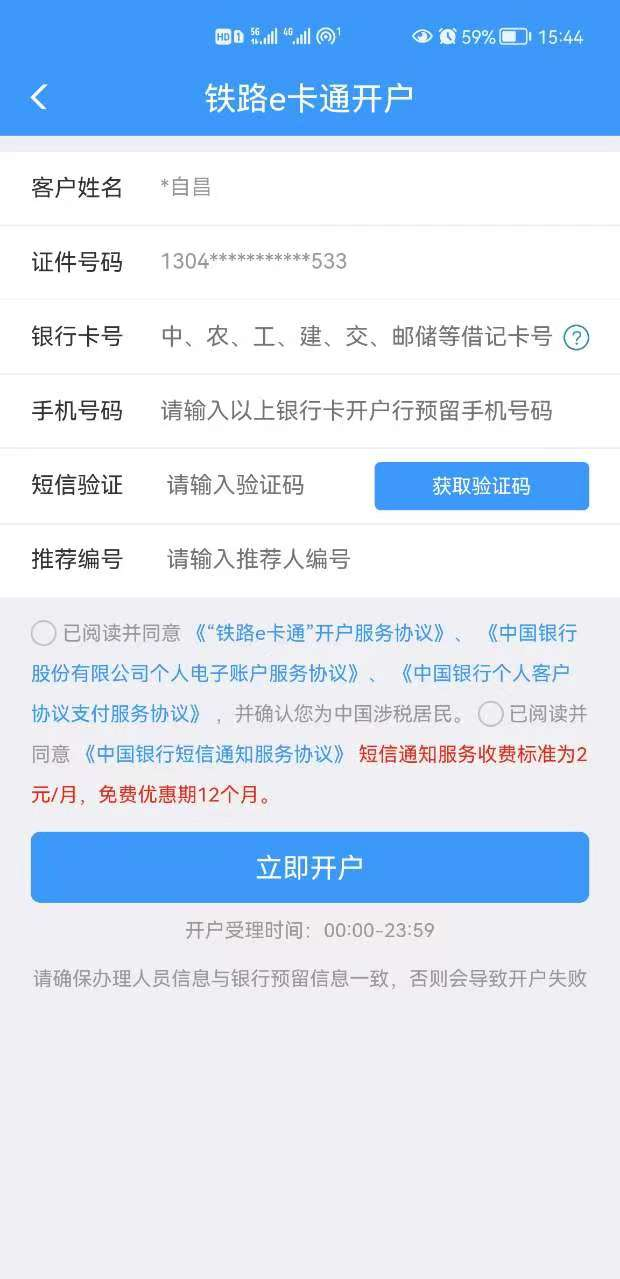 2.點(diǎn)擊任意功能按鈕,將進(jìn)入【鐵路e卡通開戶】頁面。