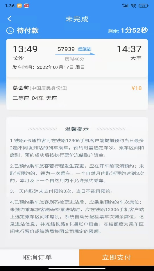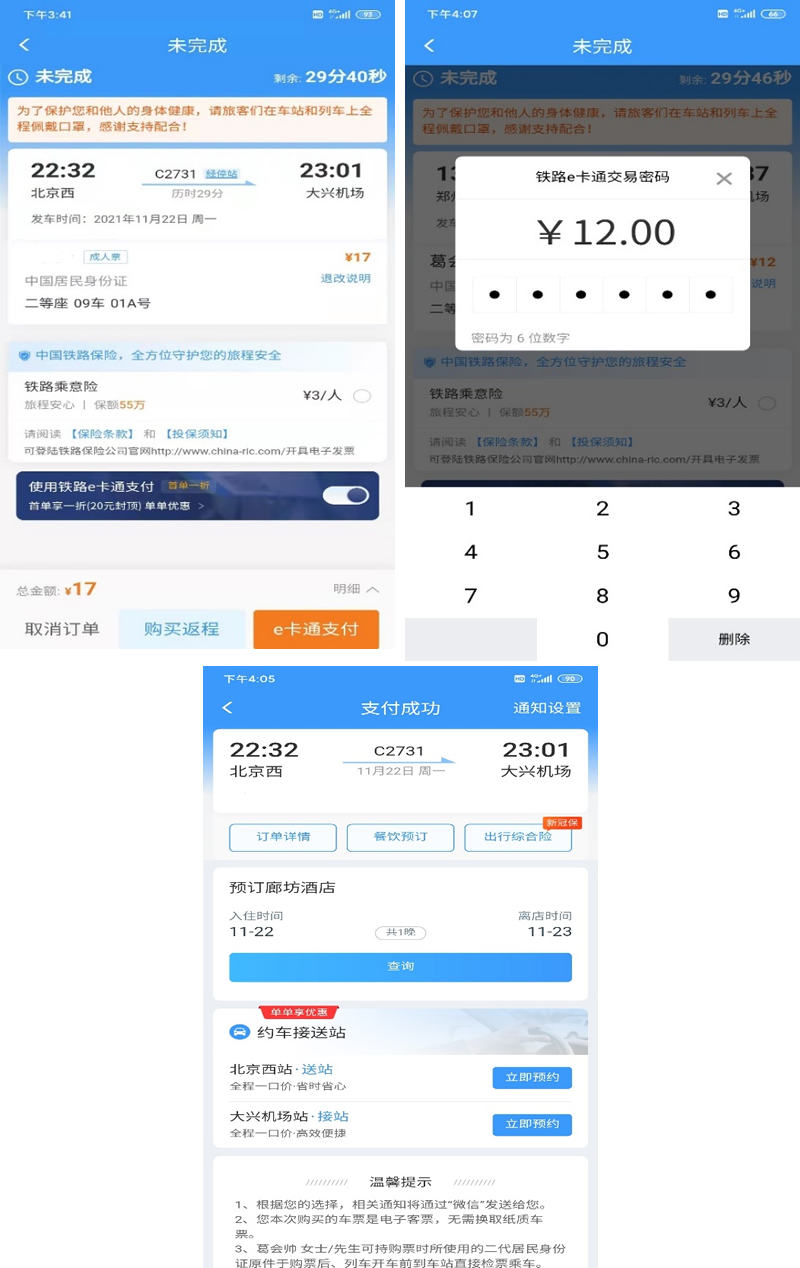 注意:當(dāng)日約號未支付訂單最多取消三次,與鐵路12306購票未支付規(guī)則一致。