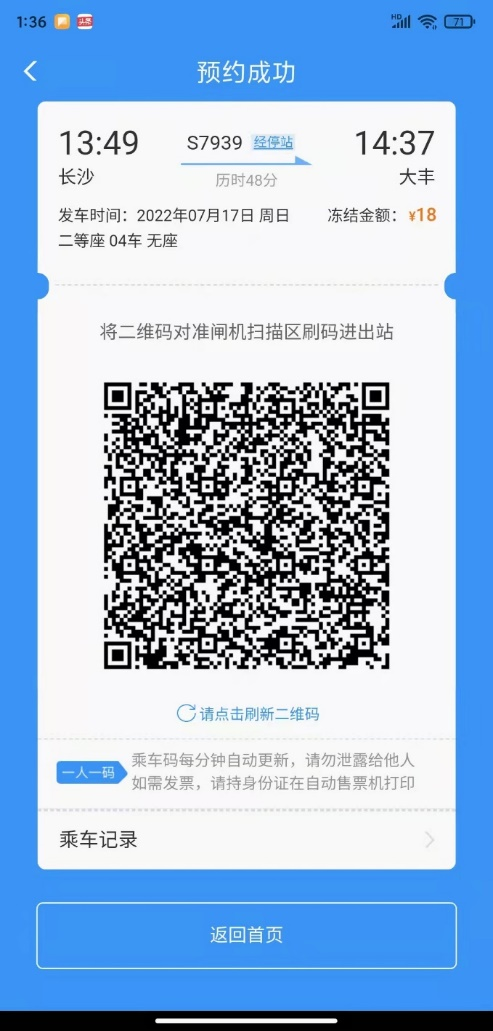 3.使用乘車碼乘車默認(rèn)為乘坐二等席,扣除二等席相應(yīng)票款。