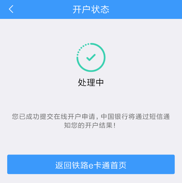 4.開戶成功后系統(tǒng)自動完成12306賬戶與鐵路e卡通賬戶的綁定。