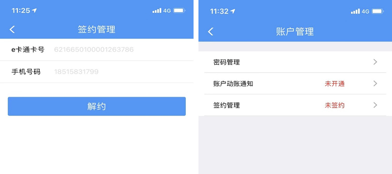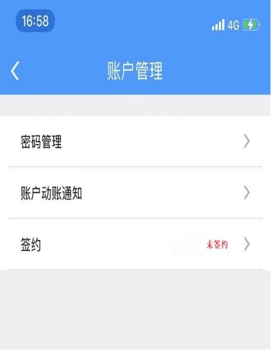 (1)賬戶管理界面,提示未簽約,點(diǎn)擊未簽約按鈕;