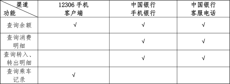 提供賬戶余額、金額變動交易明細(xì)及掃碼乘車記錄等信息的查詢功能。