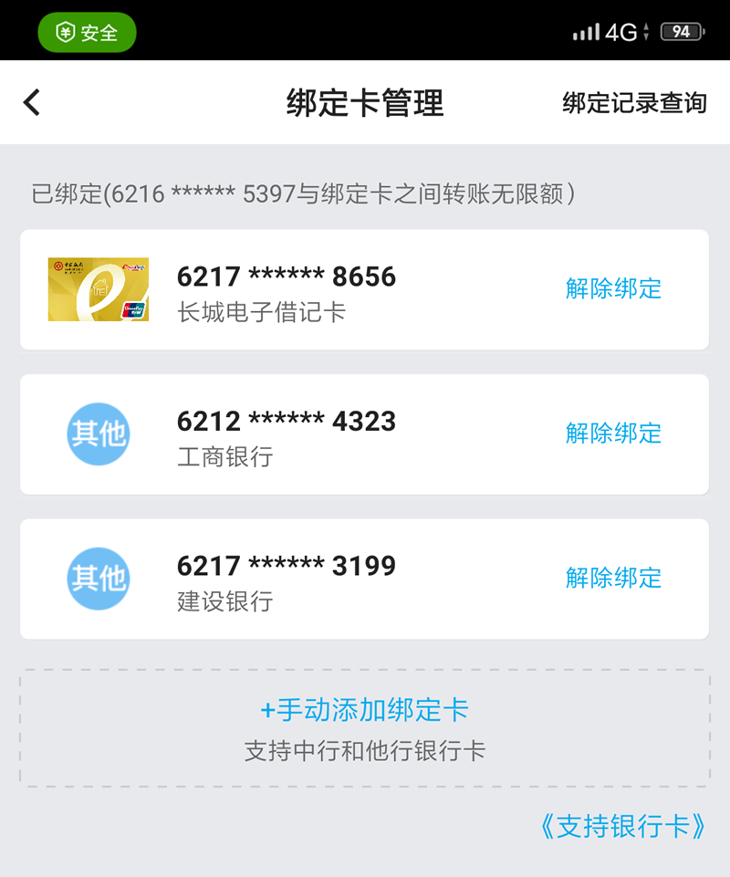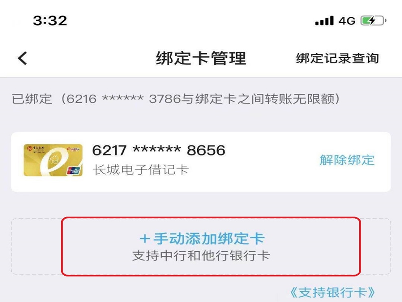2、點(diǎn)擊手動添加綁定卡